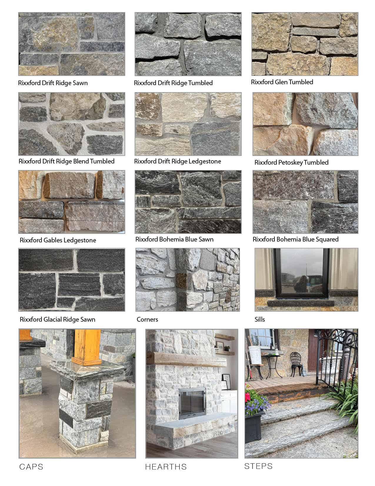 Enhancing the collection are premium stone accessories, including hearths, sills, oversized steps, and precision-cut corners—providing a complete, professional installation.