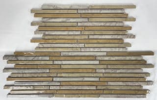 Tempered Sea Salt Blend Strips glazed natural stone mosaics are a revolution in stone and tile. The natural striations of stone are tempered with a sleek polished look of glazed tile. The unique stone cleft of every piece brings a depth of color and texture for an incredibly impactful look.  Sea Salt Blend Strips are 1″x12″  sandstone layered with rich pigment and a layer of glaze.The tile has a soft sheen and provides a luxurious look. The mosaic is backed with a plastic mesh. For a truly unique try a blend with other colors from the Tempered Collection and finish it off with a matching bullnose trim piece for a perfect finish.