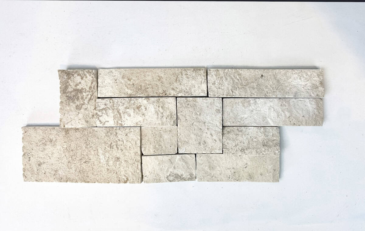 Latte Estate Stone Natural Stone Panels are made of a beautiful cream colored travertine. The Estate Stone pattern speaks of old world churches and cathedrals, castles, and country manors. Stately mansions in hidden hillsides with sumptuous grounds. Bringing the rustic appearance and raw beauty of natural stacked stone of the European countryside to our Western landscape. The timeless charm of Estate Stone instantly transforms a structure into an inspired treasure. Estate stone panels come in a fingered configuration, making installation seamless, easy, and fast compared to laying loose stone.