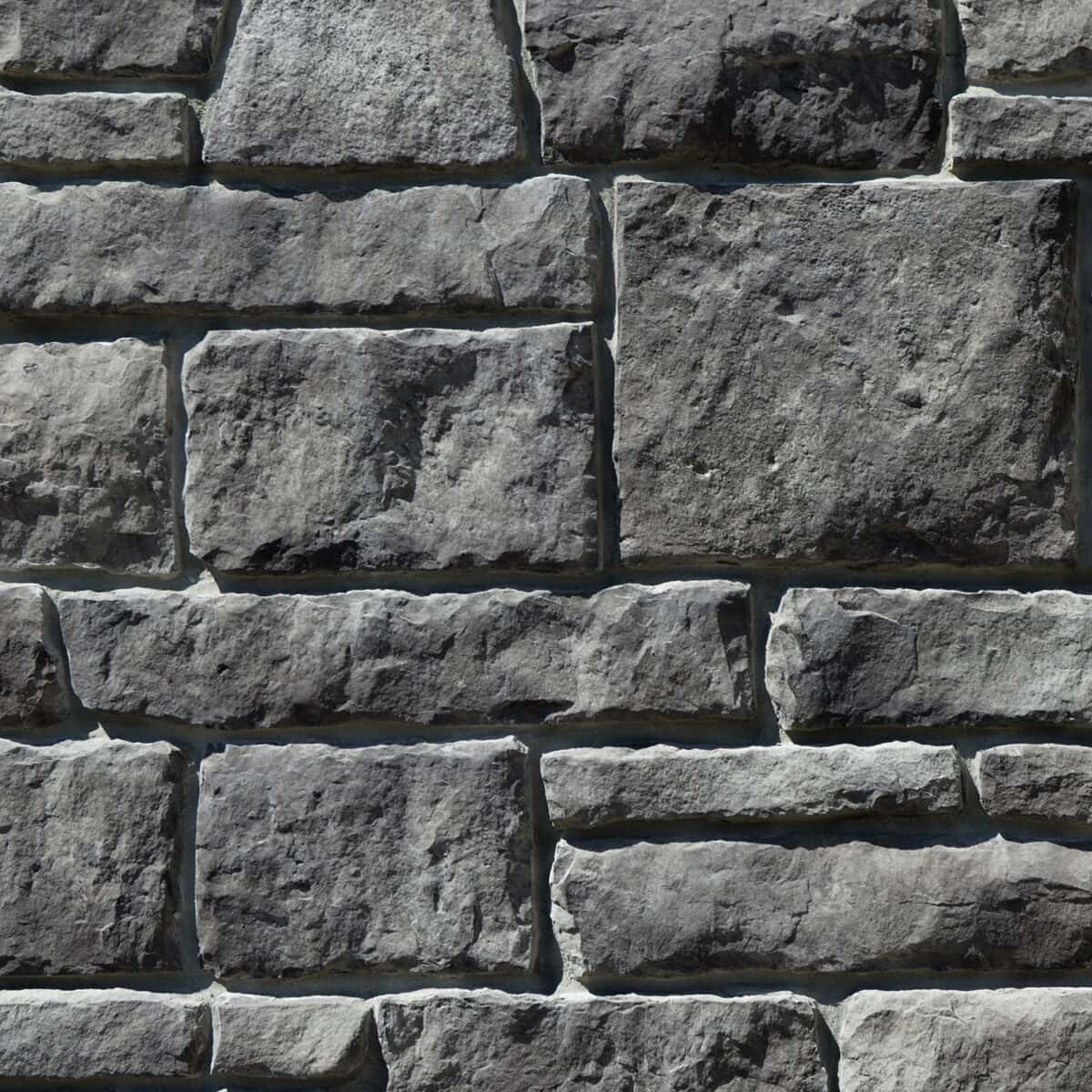 Midnight Cobble Faux Stone is a blend of dark grey colored faux stone. The large stone pieces are derived from molds of a variety of natural stones hand-selected by our masons.
