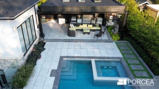 Moongrey is a light grey outdoor porcelain tile, available in 2 cm thickness. Outdoor porcelain is suitable for all applications including patios, walkways, pool decks, pedestrian commercial traffic, building facades, veneers, and even vehicular traffic with a concrete base. It is highly durable and designed to withstand our North American climate.