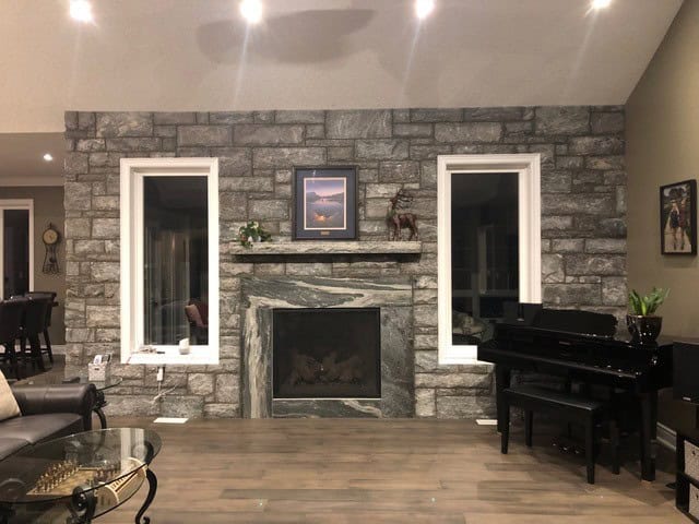 Sawn height loose stone in Black Granite Medium to Dark Grey with occasional Quartzite deposits- Flats- Sold in 75sqft Quantities. Discover the beauty and durability of natural stone veneer with this premium collection. Crafted from authentic limestone or granite, each piece offers timeless elegance and exceptional strength for both interior and exterior applications. Ideal for fireplaces, accent walls, outdoor kitchens, and full-scale exterior cladding, this stone brings a sophisticated yet organic look to any space. Featuring textures like sawn height, tumbled finish, and ledgestone, these stones deliver unmatched versatility for modern and traditional designs alike. Our stone veneer is weather-resistant, easy to maintain, and designed for seamless installation with options for flats and corners. Perfect for residential and commercial projects, this collection combines natural beauty with lasting performance. Available in convenient quantities for large or small projects, ensuring flexibility and efficiency. Transform your home or business with the enduring charm of real stone—where quality meets design innovation.