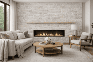 Transform your home or commercial property with the clean elegance and enduring beauty of Mist Ridge off-white limestone stone veneer—where natural materials meet timeless design.